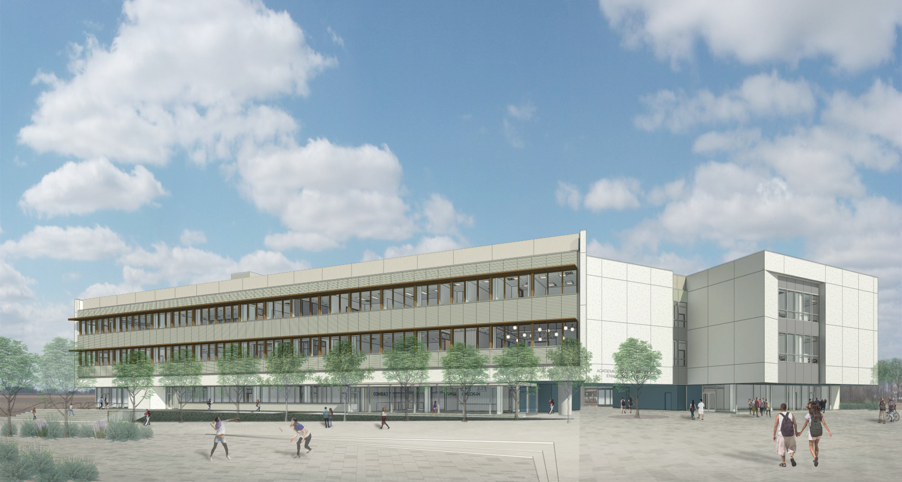 Located at the gateway to Academic Walk, the Administration Building  will be an integrated, one-stop, location for students to conduct financial aid, registration and academic-related business with the University.  It will also be the new site for additional classrooms, retail and a campus store.  LEED Gold is the design target.